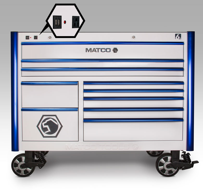 The Power-Integrated Toolboxes come with the same flexible options and add-ons that allow customers to design their own toolbox to fit different spaces and needs. With several color and trim options, a Matco toolbox is a reflection of individuality. Matco is the only mobile tool company that currently offers the complete power storage solution, starting with an entry-level toolbox continuing through the line of hutches and side lockers. This extensive offering makes Matco’s toolboxes the most obtainable for every tech in the industry.